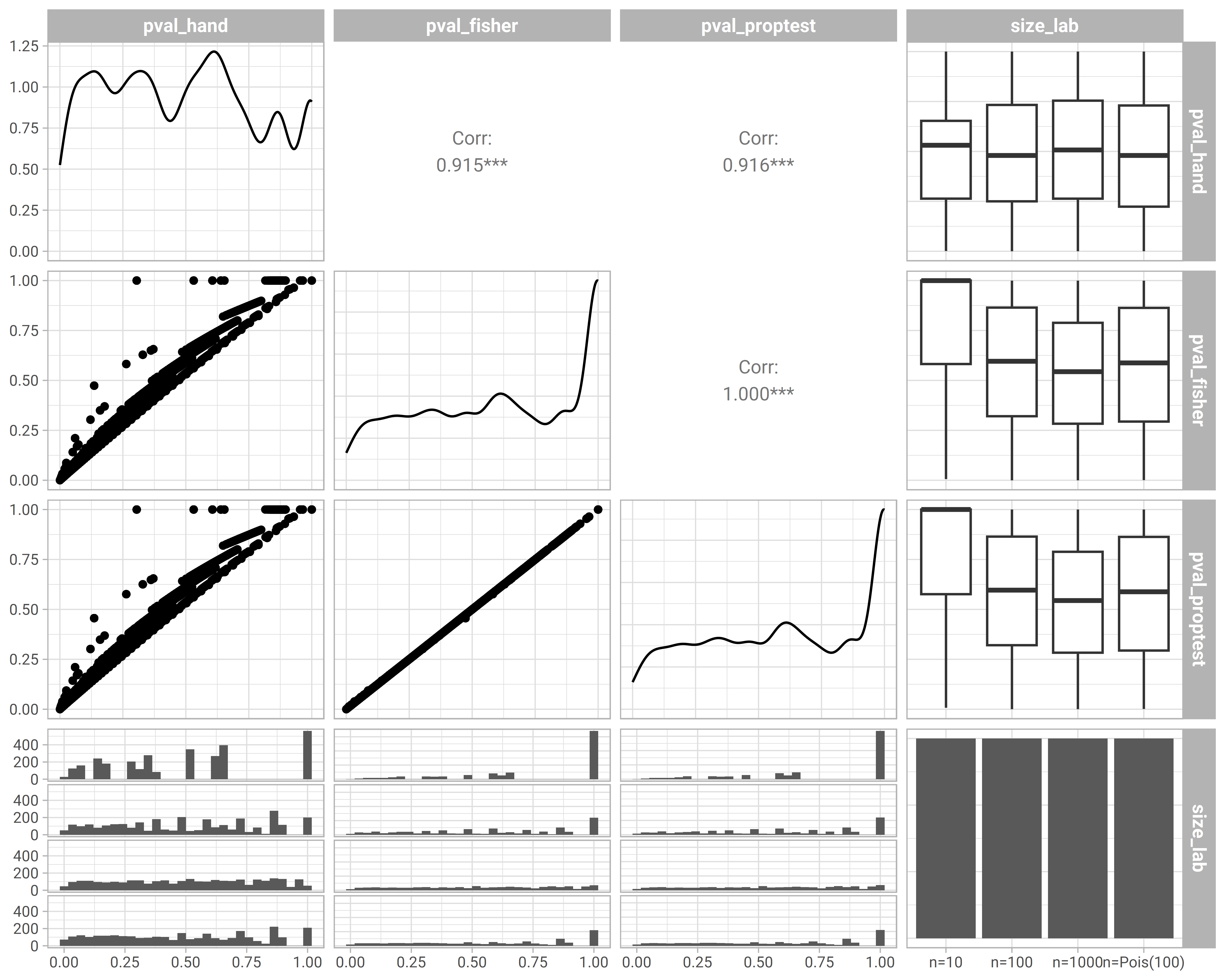 select(pval_hand:pval_proptest, size_lab) |>